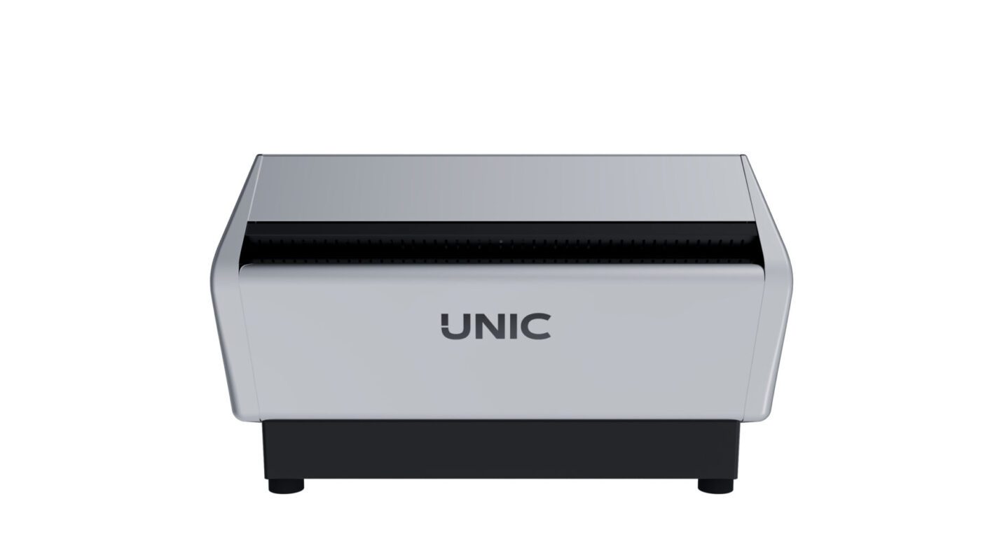 Die exklusive, patentierte, DOSAMAT®-Technologieoptionale der UNIC steigert die Effizienz und erhöht die Arbeitsgeschwindigkeit: Sie erkennt die Größe des eingelegten Siebträgers (eine oder zwei Tassen) und dosiert automatisch das entsprechende Volumen.