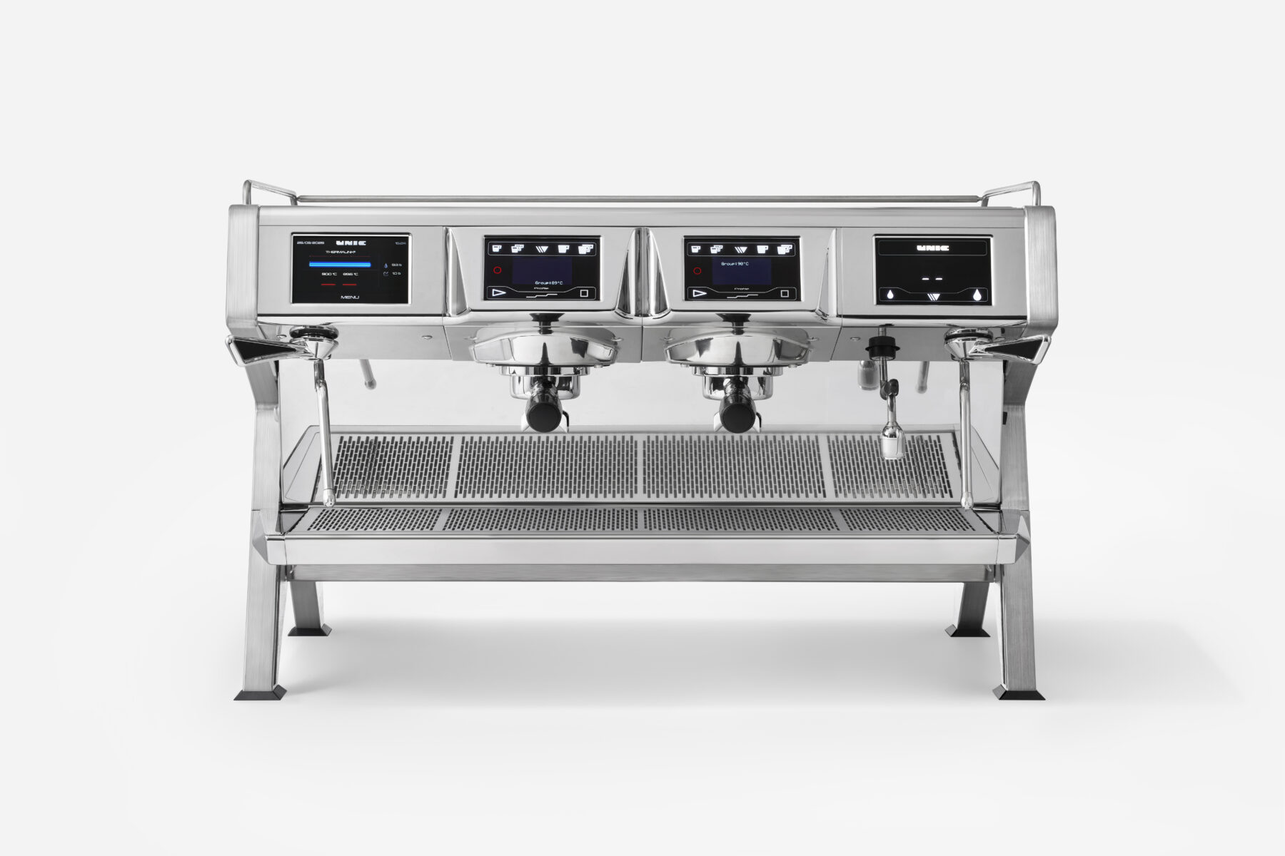 Das Multiboilersystem verfügt über gesättigte, PID geregelte Brühgruppen mit jeweils 1,65 Liter Volumen für höchste thermische Stabilität.